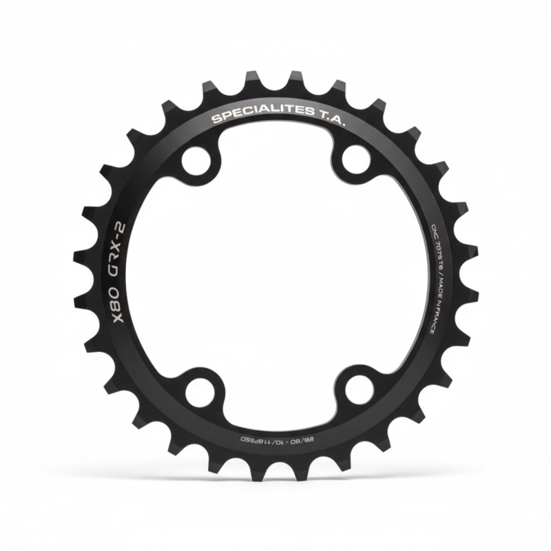O prato Specilaites TA X80 GRX-2 é compativel com 10/11/12V. Ideal para utilização num pedaleiro duplo.